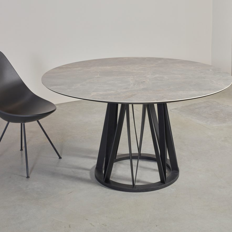 Kolos is formed in a plaster mould in a pottery where craftsmen apply the glaze and then fire the table. Although shiny and polished to the touch, the material it is made of is evident.